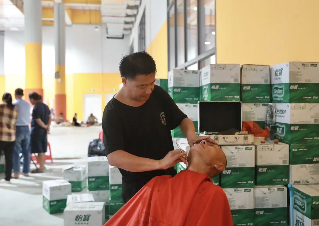 为避险场所群众提供刮胡子服务