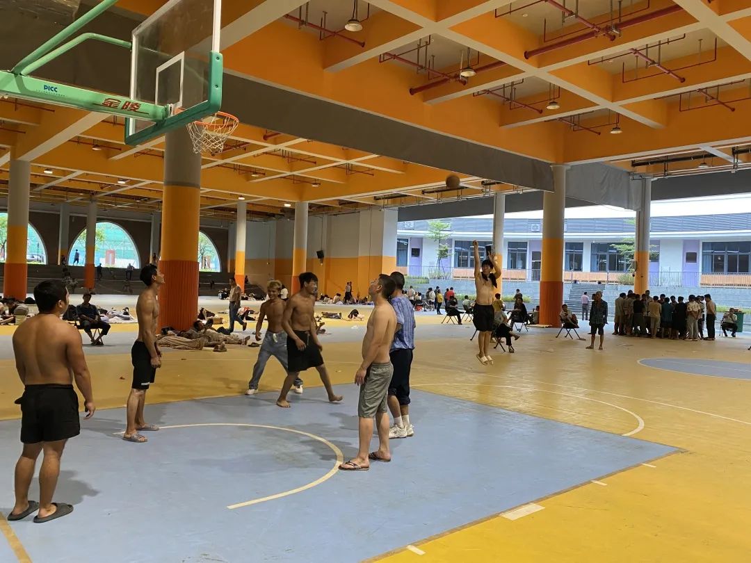 应急避险场所内打起了篮球友谊赛