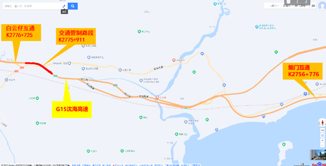 G15深汕西高速深汕特别合作区段K2775+608至K2776+268(白云仔互通至鲘门互通之间)。