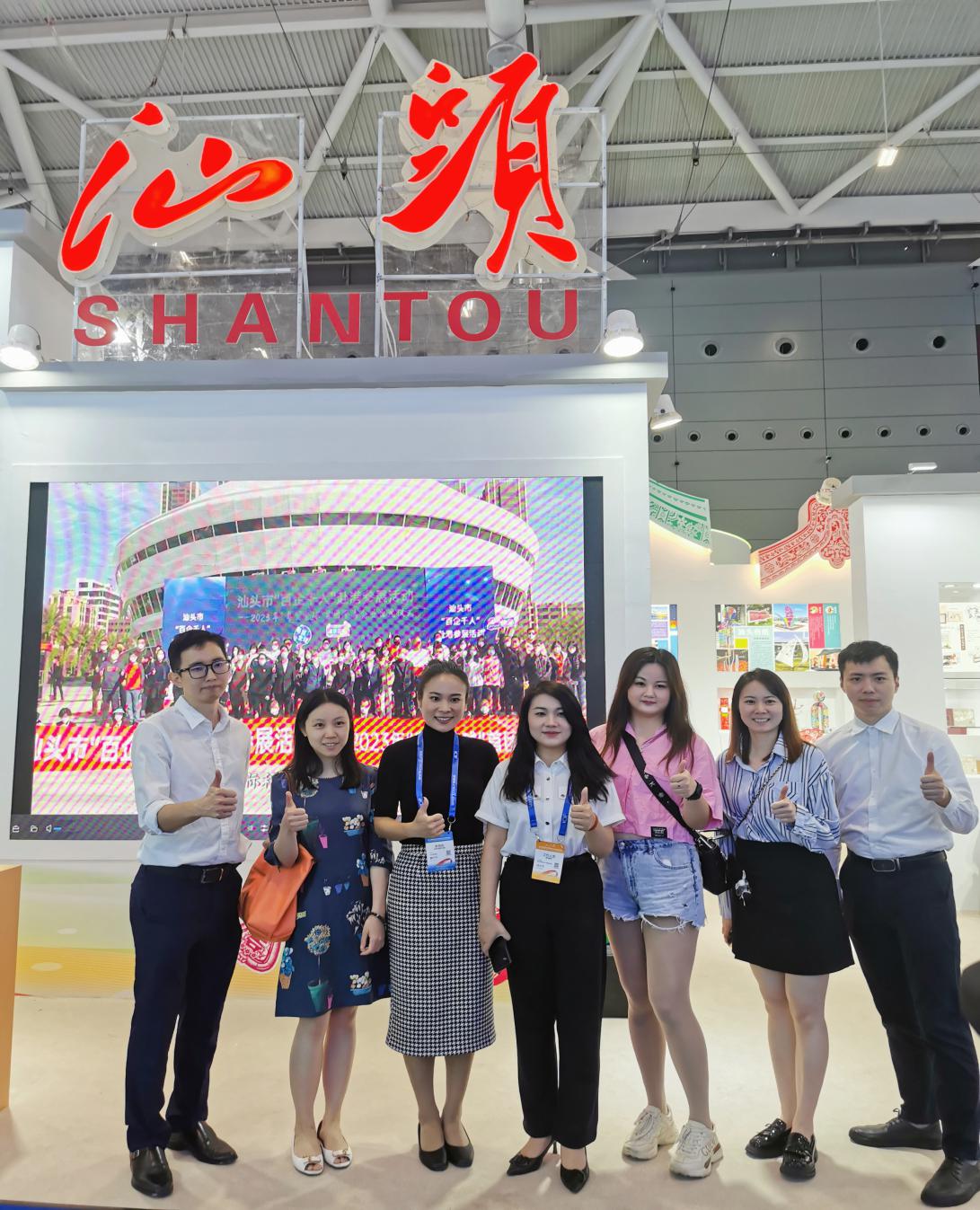 随后,海归青年体验了宝安区的数字创意+文体旅、数字创意+非遗的深度融合提供应用场景,参观了会员代表的汕头馆。汕头馆主要依托图文展板、实物展品、现场展示等形式,展出汕头市的非遗项目、文创产品、玩具礼品、旅游资源。其中,英歌舞手办、“潮博文创”、非遗项目“蛋雕”、工夫茶艺演示等特色展示项目引人注目,展现了汕头市文旅企业、非遗传承人在传承和发展潮汕优秀传统文化方面所做出的努力。