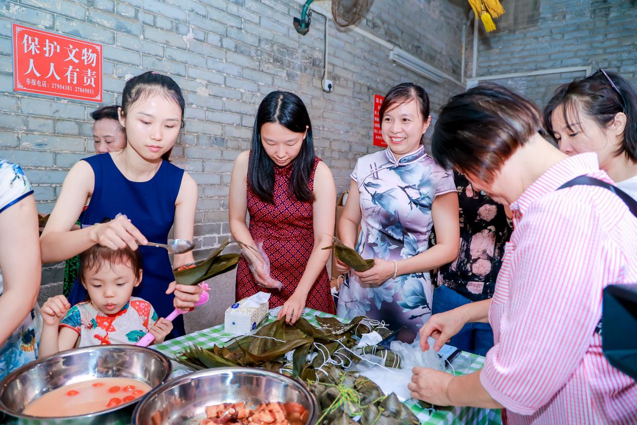 6月16日下午,海归青年与统战代表人士身着旗袍、唐装等传统服饰齐聚西乡乐群社区郑氏宗祠,赏旗袍、秀书法、包粽子,让传统活动焕发新的生机。