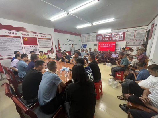 面对群众的顾虑,赤石镇加油站项目土地整备组组长杨向青和副组长刘德雄与冰深村“两委”干部,一方面邀请专业的消防队员向村民讲解加油站的消防安全预防措施,打消村民对加油站的安全顾虑。另一方面,邀请冰深村党员干部和外出乡贤与村民讲解建设加油站的利好之处,做通村民思想工作。