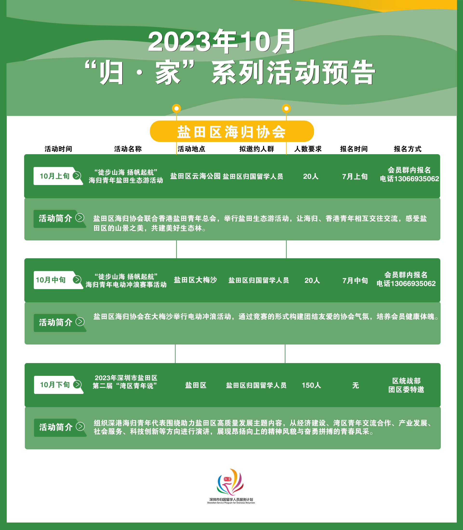 2023年10月“归·家”系列活动预告——盐田区海归协会
