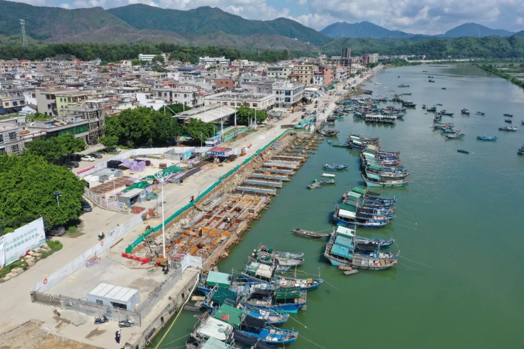 小漠渔港升级改造工程主要包括港池疏浚、码头修缮、岸堤修缮、通信管线迁改、外立面整治及道路提升等工作,前期已进行一系列陆地相关改造工作,其中涵盖市政道路工程和外立面改造等,改善了当地基础设施,也提升了渔港区域整体形象。