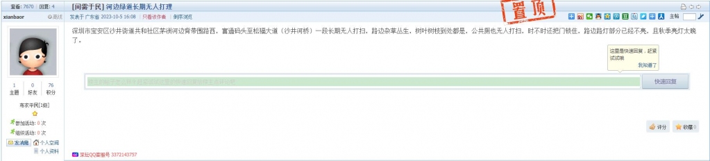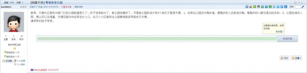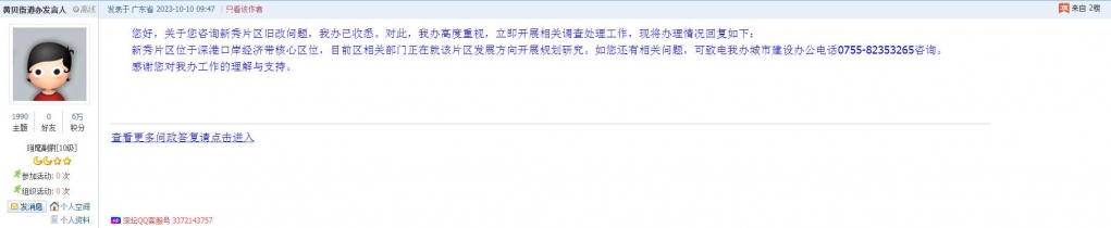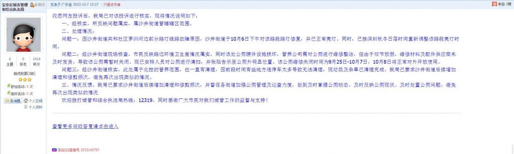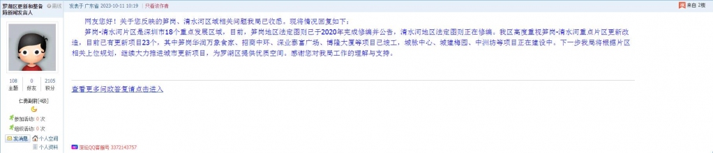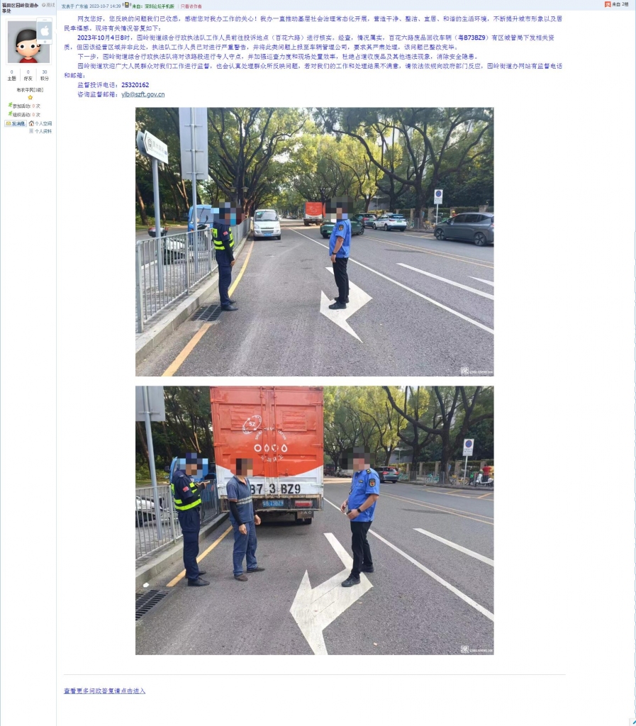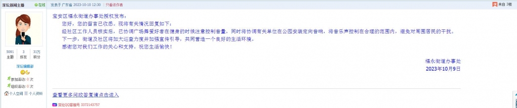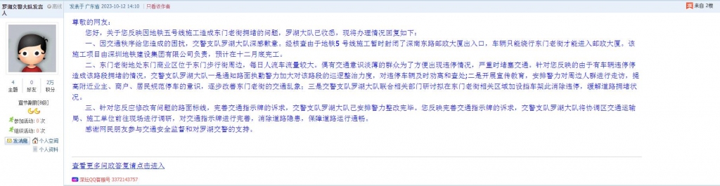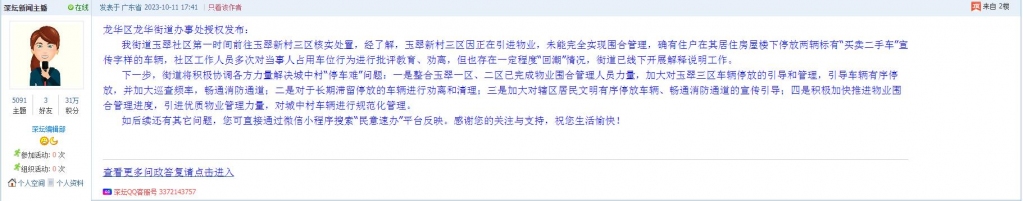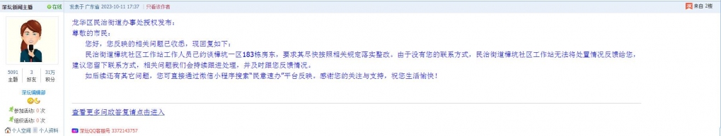 各职能单位如需对网友反映的问题进行回应,可在深圳论坛注册官方账号并通过认证,回帖进行回应。