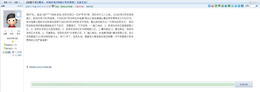16、帖文《曝光:中国水电七局拖欠劳务费用!言而无信!》