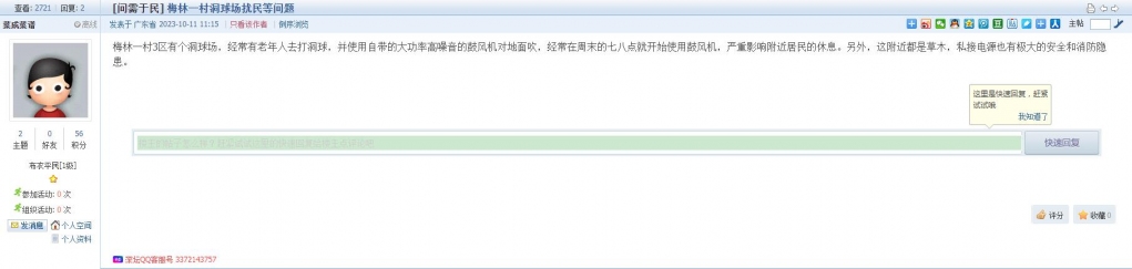 9、帖文《投诉黄贝岭祠堂广场的锣鼓队 长期噪音扰民》