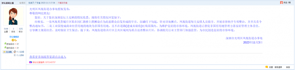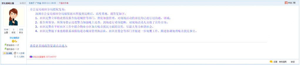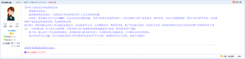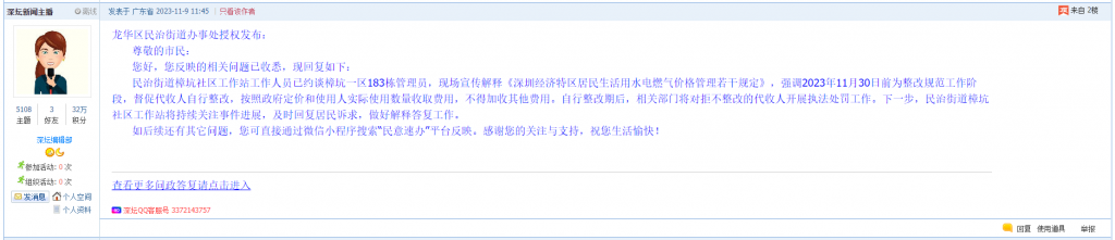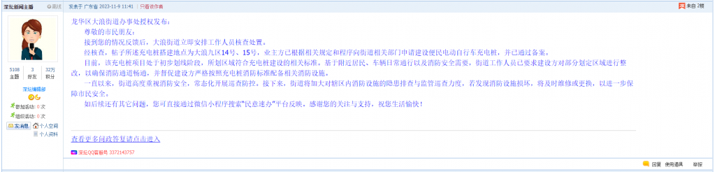 各职能单位如需对网友反映的问题进行回应,可在深圳论坛注册官方账号并通过认证,回帖进行回应。