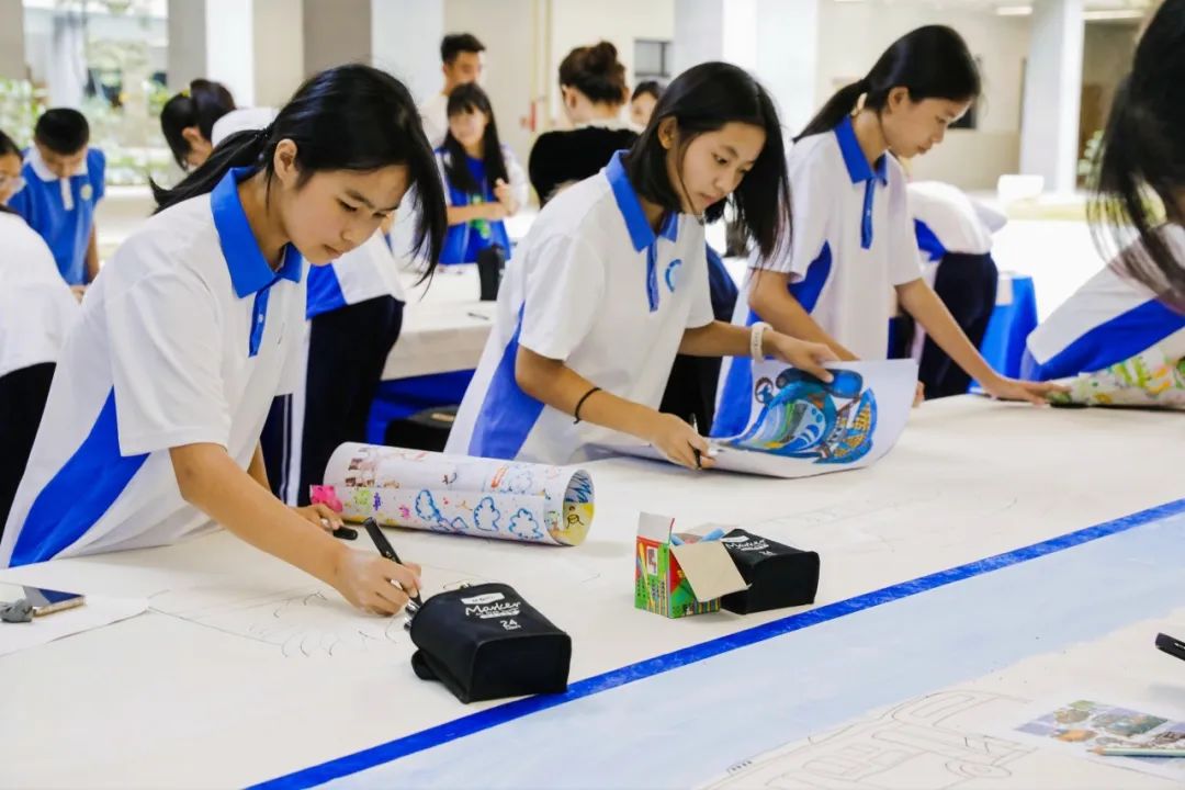 来自南外深汕西中心学校的庄老师表示,很荣幸可以带领学生参与此次活动。在巨幅长卷上创作是一个不小的挑战,同学们团结协作,充分发挥想象力,共同完成了这幅作品。