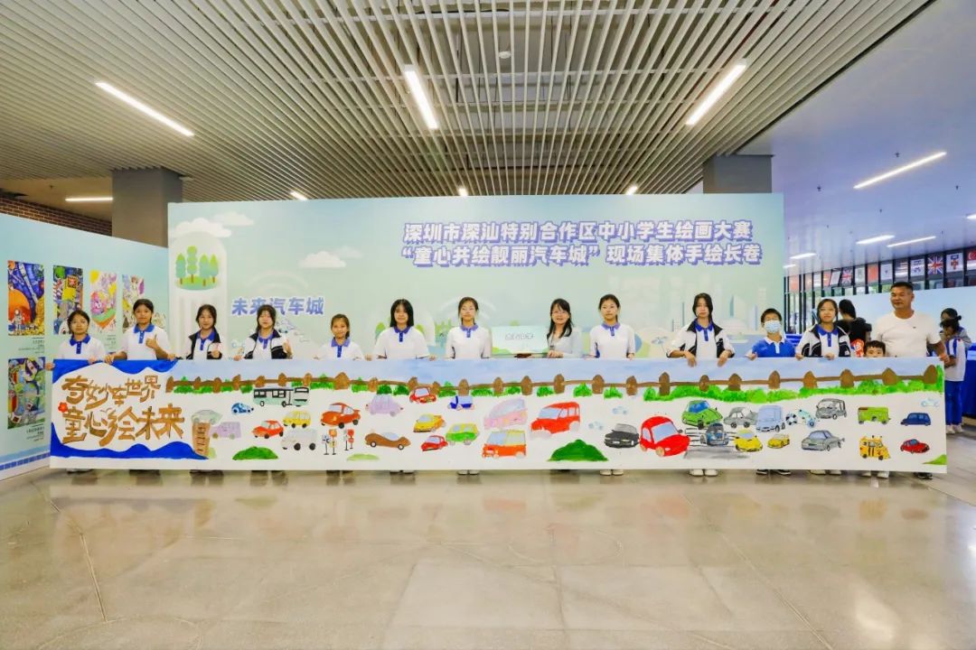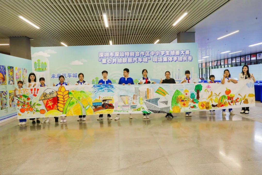 比赛期间,深汕特别合作区师生以长卷为媒,挥洒画笔描绘生机勃勃的深汕、滚滚热潮的汽车城,传递着一份对汽车城的美好祝愿……