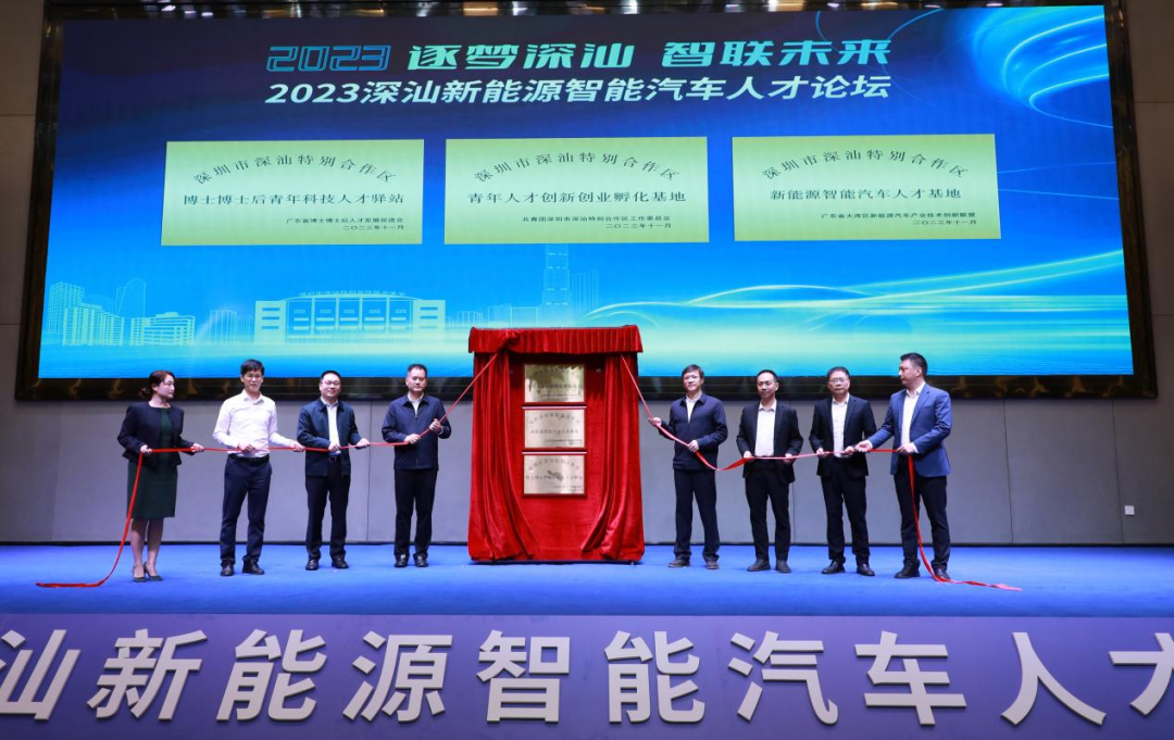 当天,深圳市深汕特别合作区博士博士后青年科技人才驿站、新能源智能汽车人才基地、青年人才创新创业孵化基地正式揭牌。