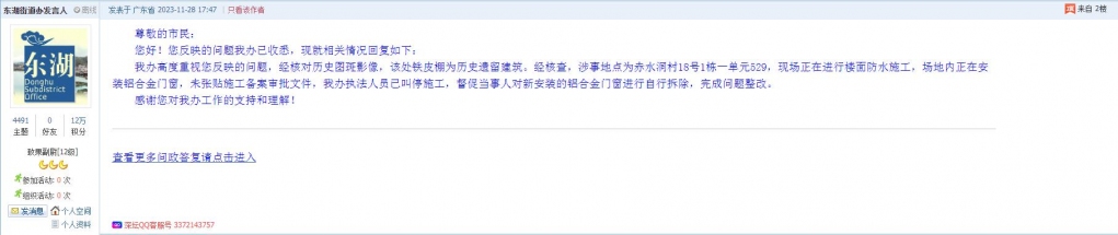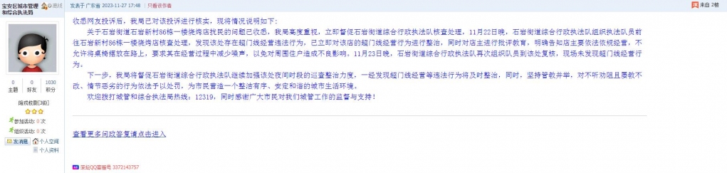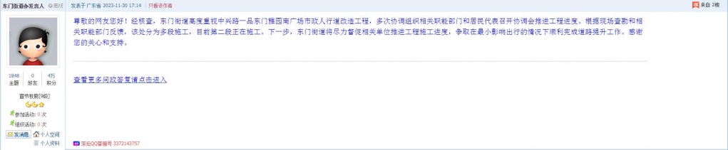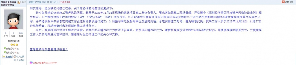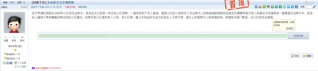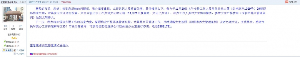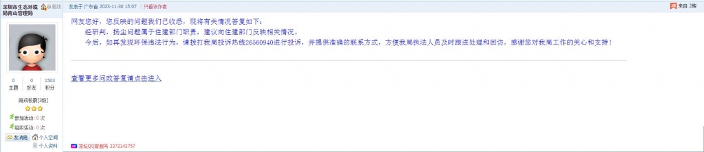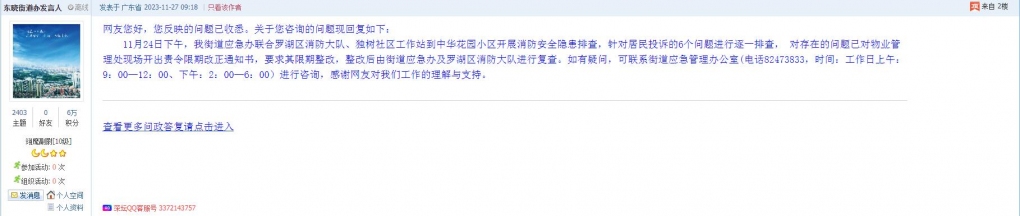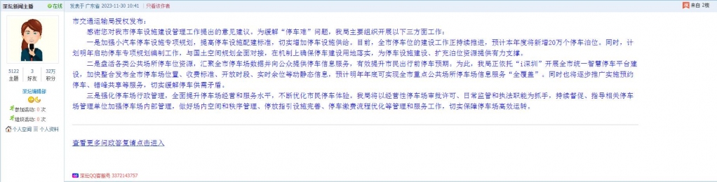 各职能单位如需对网友反映的问题进行回应,可在深圳论坛注册官方账号并通过认证,回帖进行回应。