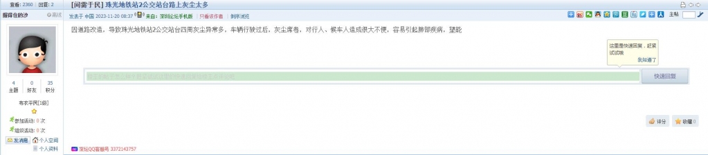 9、帖文《珠光地铁站2公交站台路上灰尘太多》