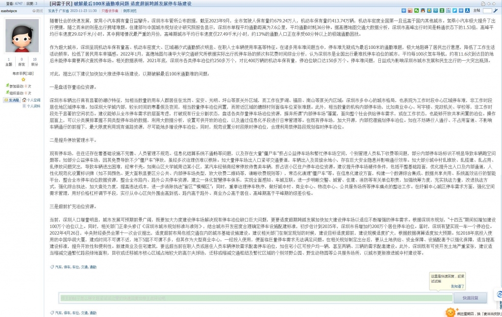 6、帖文《破解最后100米通勤难问题 适度超前跨越发展停车场建设》
