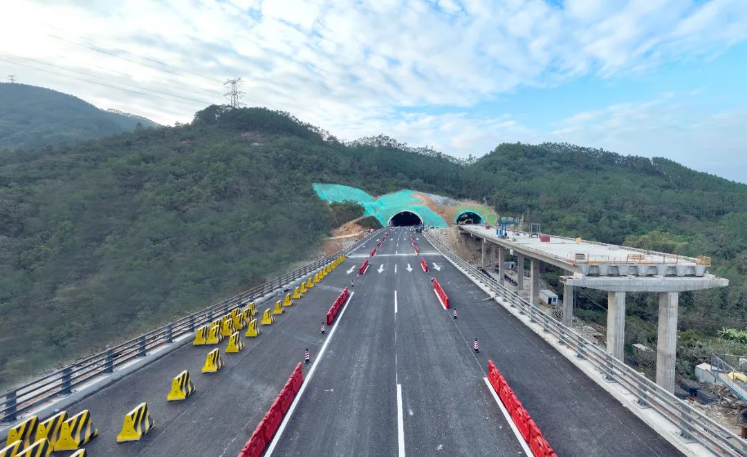 通港大道北段计划2024年6月建成通车,已完成形象进度超过九成。目前,左幅已全线拉通,标志标线、路灯、护栏等设施已全部完成,暂不对社会车辆开放;右幅除小漠港隧道及绿宝路桥等部分路段外,主体结构均已完成,部分路段已完成沥青路面施工。