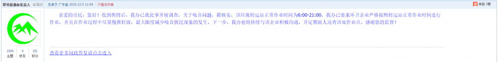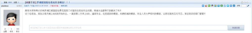 4、帖文《罗湖爱国路垃圾站作业噪音!》