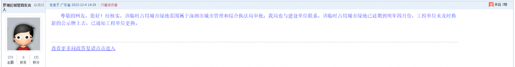 各职能单位如需对网友反映的问题进行回应,可在深圳论坛注册官方账号并通过认证,回帖进行回应。
