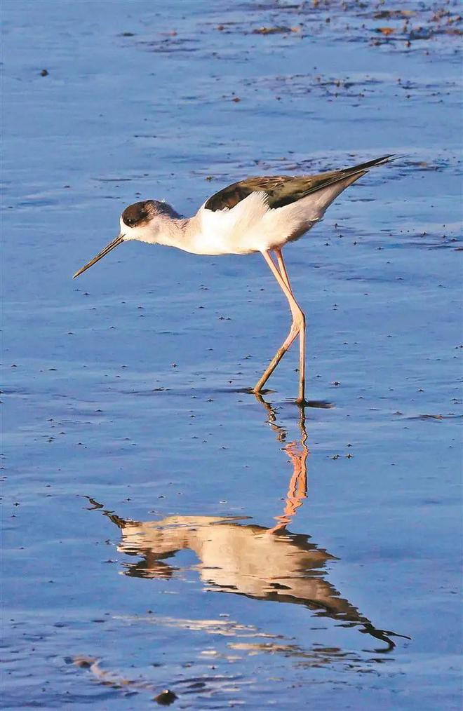 ▲鸟儿在退潮后的深圳湾浅滩上觅食。深圳晚报记者 陈玉 摄