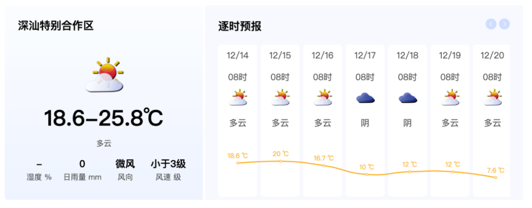 据区气象服务工作组消息,深汕特别合作区12月13-15日暖湿有轻雾,气温逐日上升;寒潮到深汕后将减弱为强冷空气,受其影响,16-17日深汕特别合作区有大风和剧烈降温天气,16日阴天有小雨,气温断崖式下降,17日早晨最低气温降至10℃左右,体感阴冷。