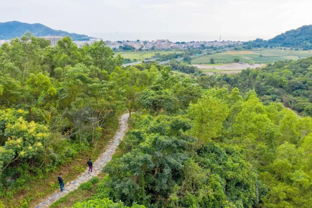 近期,深汕古驿道鲘门观海段全线贯通,位于线路终点处北端的南山岭古道,有壮帝居、舒逸亭等名胜古迹遗存。登高南望,山海连城的壮阔美景扑面而来。