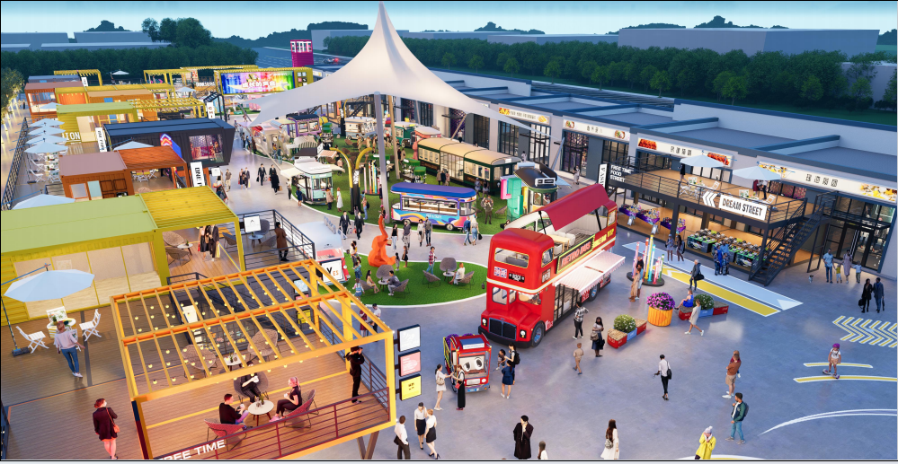 业态包含美食小吃、休闲酒水、娱乐体验、舞台表演,打造具有深汕特色的美食文创街区,同时为比亚迪员工及周边群众创造优质的社交休闲空间。