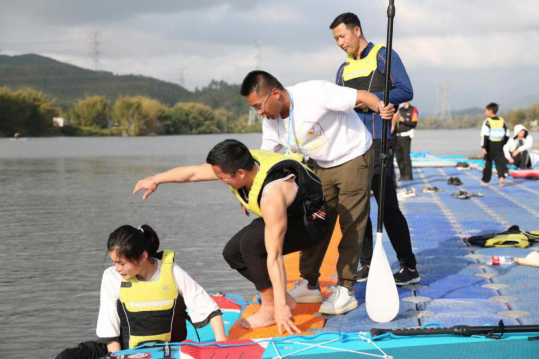 答:可以体验桨板运动。桨板运动是一项水上运动,可以在桨板上站着、坐着、趴着,而且在静水区域玩,不必担心落水危险。而且会有脚绳将你和桨板连接在一起,就算落水了,也可以很快速回到桨板身边。