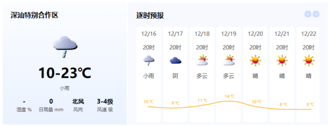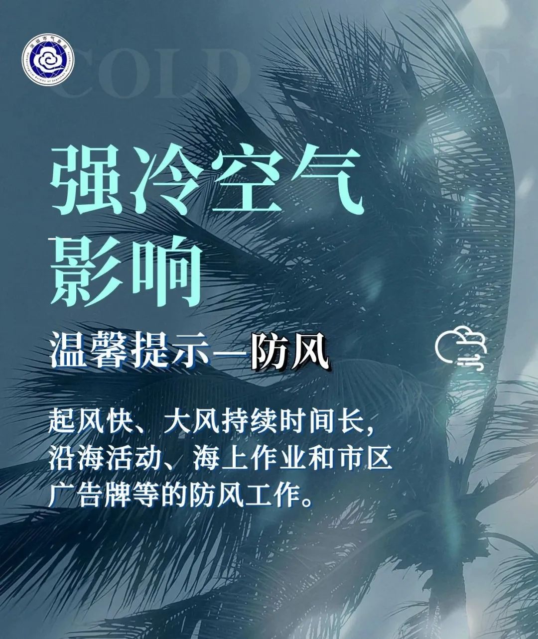 据深汕特别合作区气象服务工作组消息,预计16日起受强冷空气影响,将有强降温大风小雨天气,气温断崖式下降并伴有最大阵风8级左右;