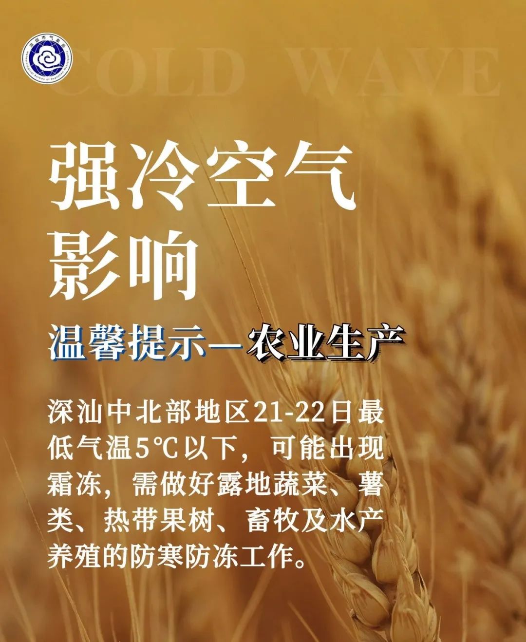 1、受强冷空气影响,16日起深汕特别合作区将出现大风和剧烈降温天气。需做好防寒救助、农作物防寒保暖、疾病预防、防一氧化碳中毒和沿海防风等工作;