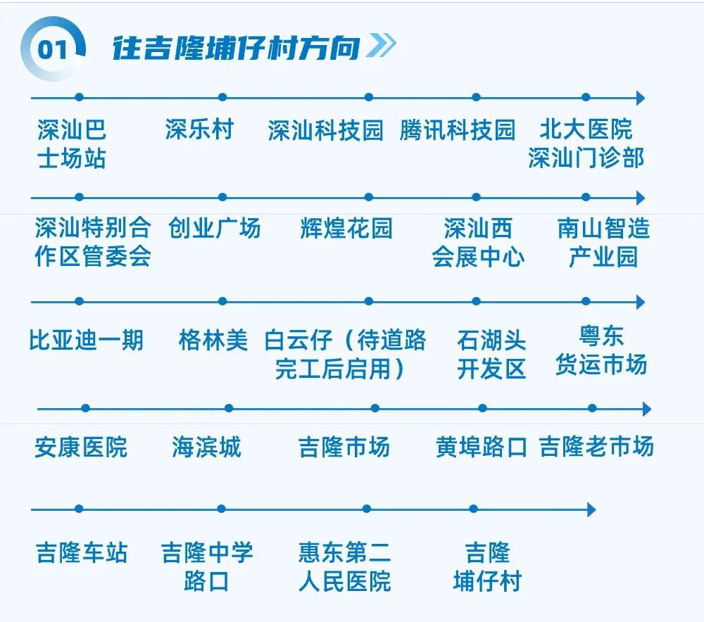 日前,深圳市交通运输局深汕管理局与惠州市、汕尾市交通运输局积极沟通对接,并组织深汕巴士公司详细调研,形成开行方案。其中鹅埠镇至惠州惠东县吉隆镇的线路率先筹备完成,深汕-惠东1路25日开通。