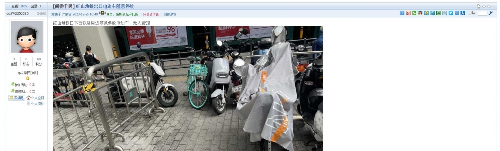 3、帖文《龙岗坂田发展大厦路段应规划早餐摊贩区域,避免拥挤》