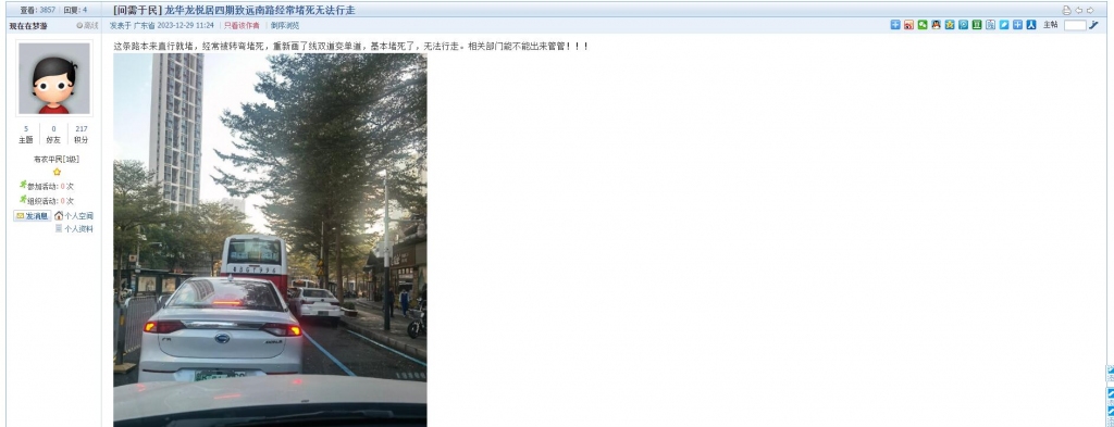 6、帖文《龙华龙悦居四期致远南路经常堵死无法行走》