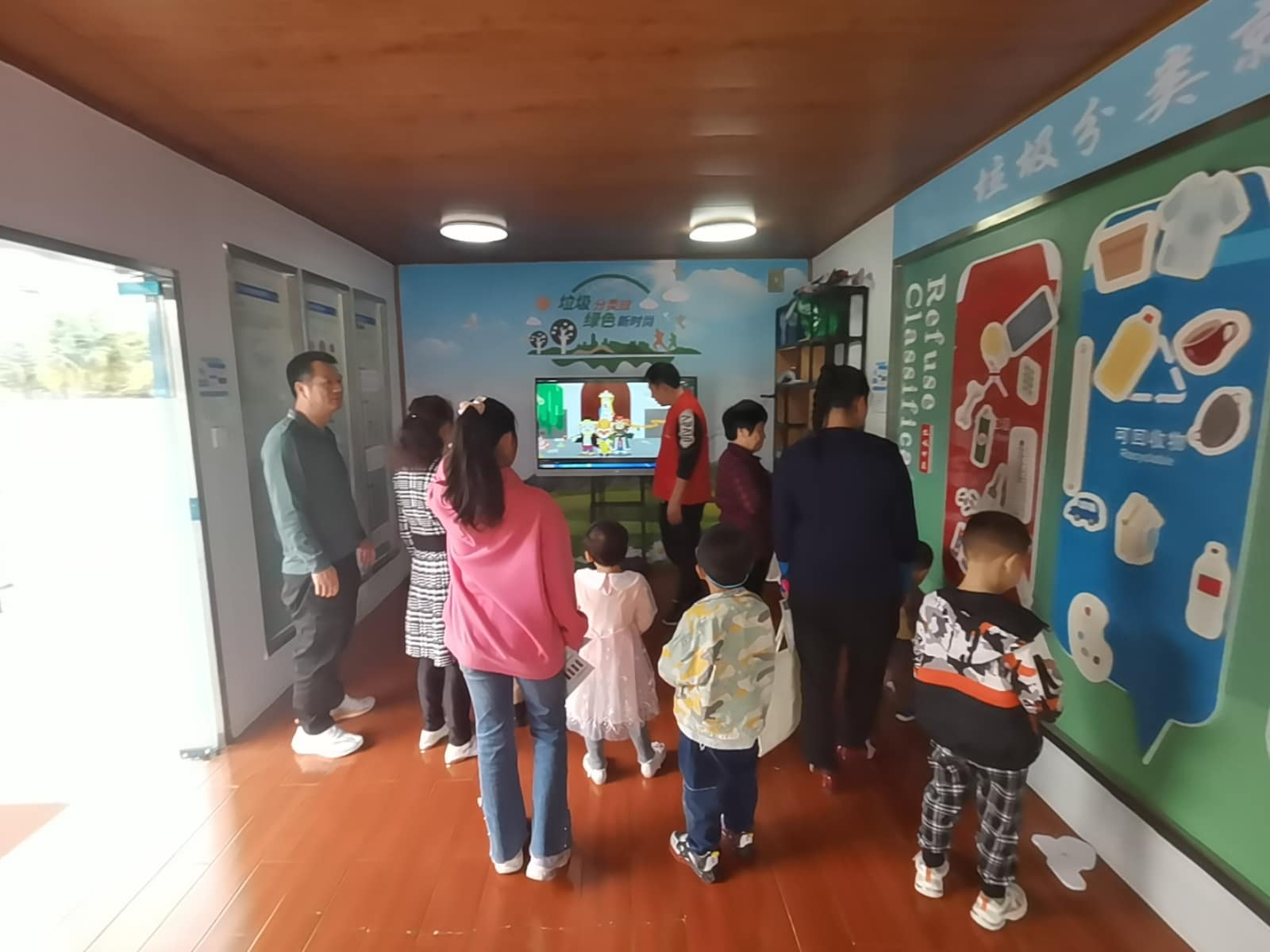 首先,体验馆内设有“蒲公英”大讲堂,由蒲公英志愿讲师作参观引导,从历史和现实、国内和国际、技术以及理念等不同的角度将垃圾分类的故事娓娓道来。同时,还播放了孙悟空打垃圾“怪兽”的垃圾分类视频,小朋友们可以更直观了解到垃圾“怪兽”的源头及其威力,学习深圳垃圾分类发展历程及垃圾四大分类法,看到分类的末端是如何将垃圾进行分类处理,以及带领垃圾“怪兽”回家如何变废为宝。