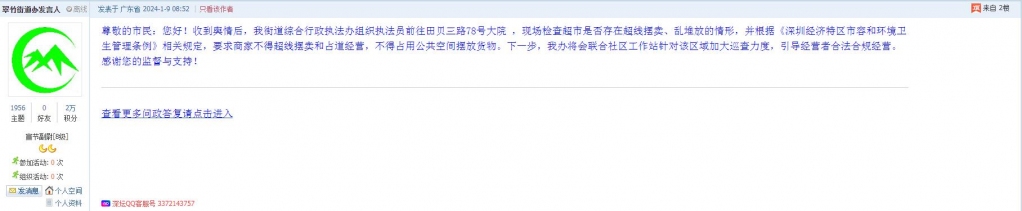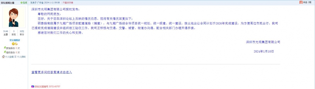 各职能单位如需对网友反映的问题进行回应,可在深圳论坛注册官方账号并通过认证,回帖进行回应。