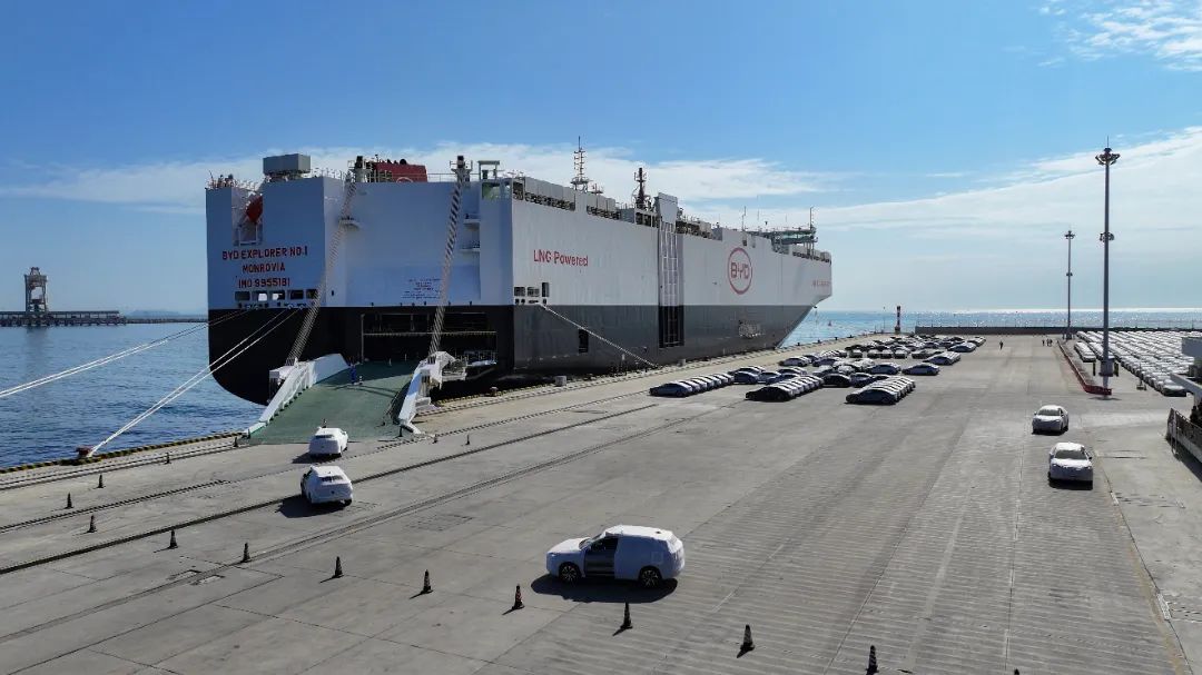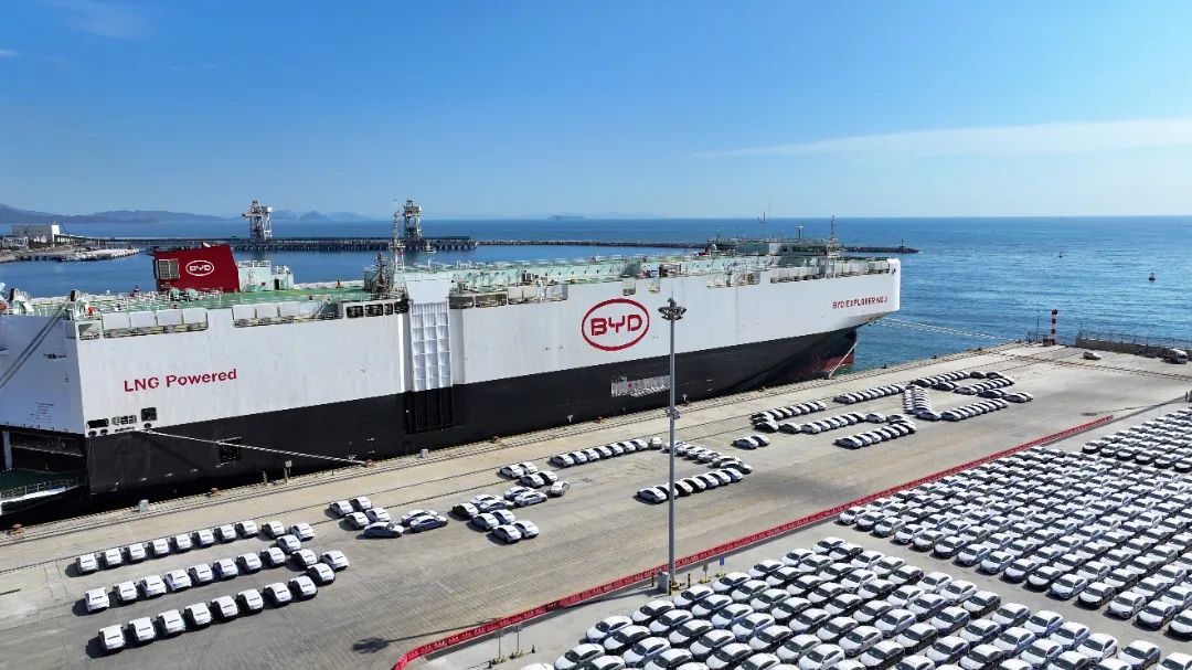 作为中集来福士7000车位系列滚装船的首制船,比亚迪开拓者1号的起航具有重要意义,这不仅是中国船厂首次建造的专门用于国产汽车出口的滚装船,更是展现了国内造船业在绿色智能技术方面的突破。该轮总长199.9米,型宽38米,设计吃水8.6米,设计航速19节,装载量为7000台车,采用天然气(LNG)/燃油双燃料推进系统,最高续航里程达到15800海里。该轮计划16日离开小漠港后,直抵欧洲。