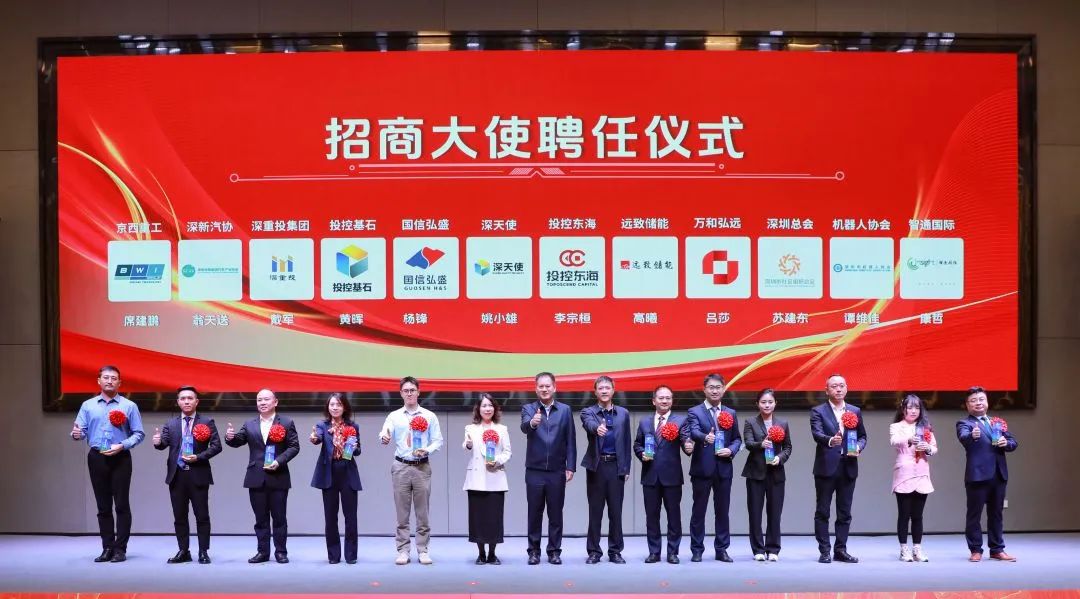 大会上,深汕特别合作区与深圳职业技术大学、深圳市天使投资引导基金管理有限公司现场签约,为2024深汕发展打响“开门炮”。深天使、投控东海、国信弘盛、远致储能、投控基石、万和弘远、深重投集团、深圳总会、深新汽协、机器人协会、京西重工、智通国际等企业机构的相关负责人获聘为深汕招商大使。