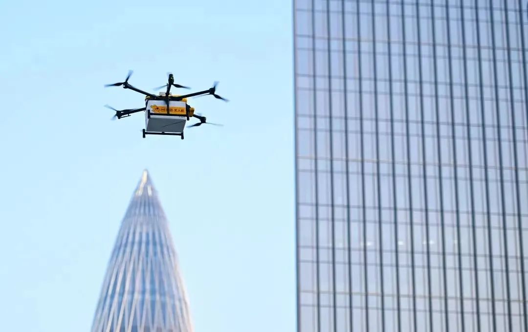 后海片区无人机物流配送。图源:新华社