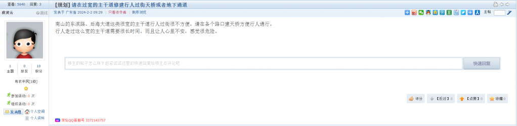 6、帖文《请在过宽的主干道修建行人过街天桥或者地下通道》