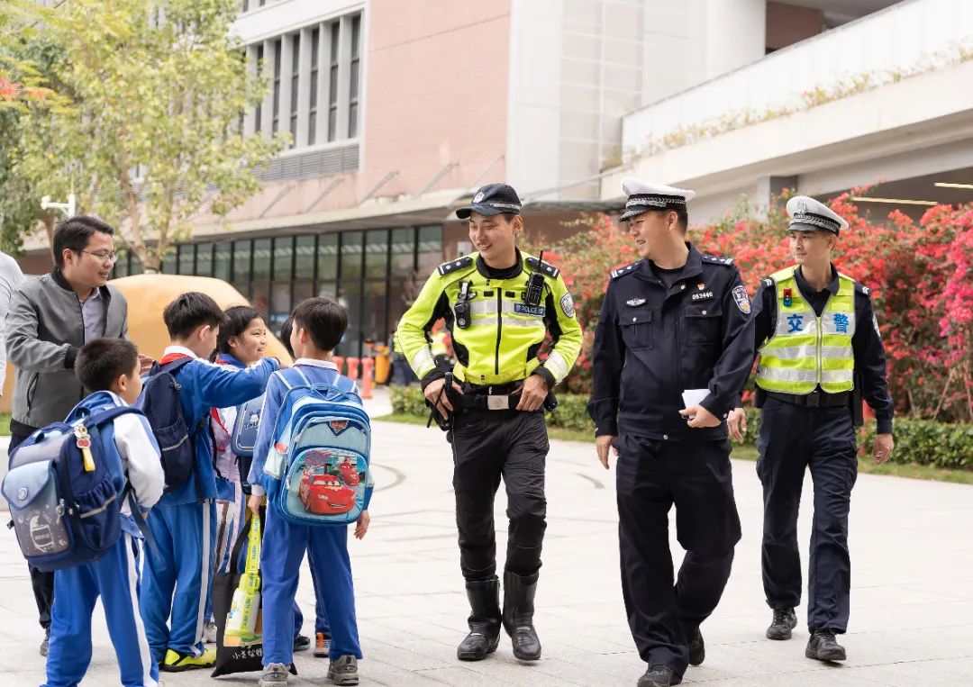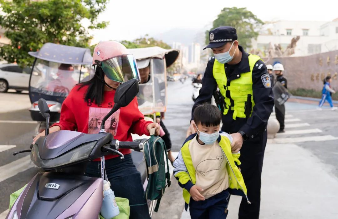 据了解,开学第一天,深汕交警科学设置“护学岗”,组织警力在中小学重点路段、重点时段执勤值守,全力维护辖区校园周边道路交通秩序,筑牢交通安全屏障。