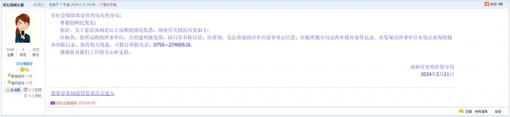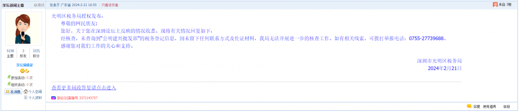 各职能单位如需对网友反映的问题进行回应,可在深圳论坛注册官方账号并通过认证,回帖进行回应。