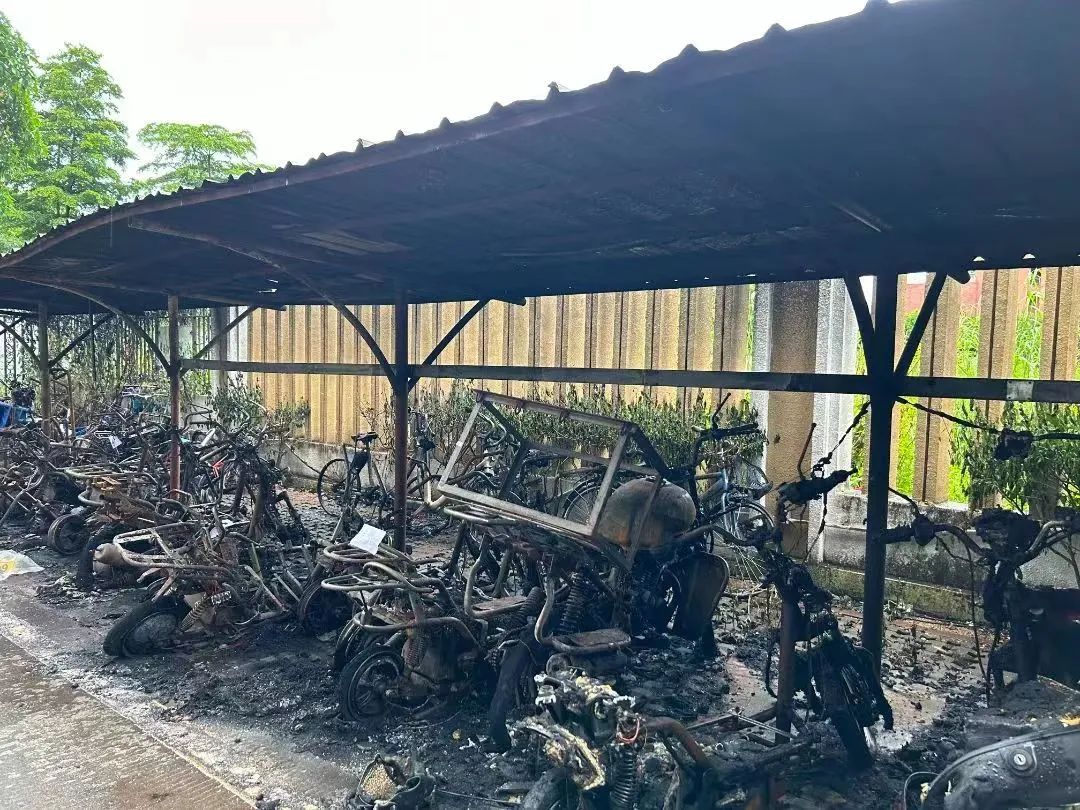 2023年7月2日凌晨,在珠海市斗门区白蕉镇东第花园,一电动自行车停车棚发生火灾。所幸该小区物业设置了电动自行车集中充电区域,且事故发生在户外,避免了事态进一步发展,未造成人员伤亡,但烧毁了20余辆电动自行车。经初步调查,起火原因为一名外卖骑手将锂电池放置于电动自行车脚踏位置充电,在充电过程中,锂电池发生热失控引燃了周边电动自行车。