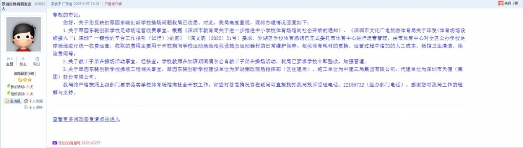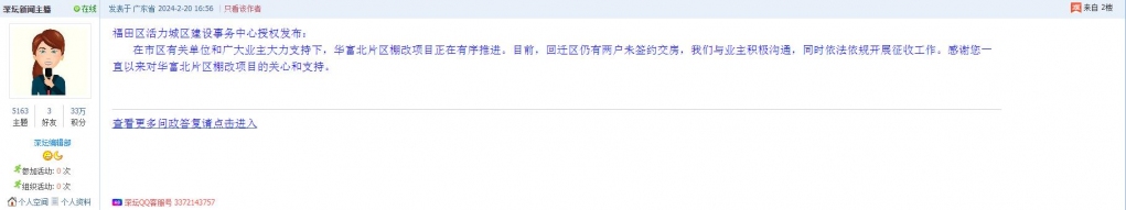 各职能单位如需对网友反映的问题进行回应,可在深圳论坛注册官方账号并通过认证,回帖进行回应。