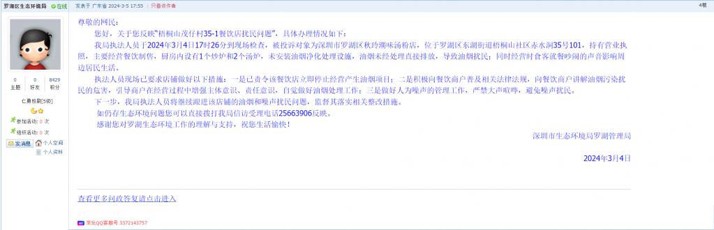 各职能单位如需对网友反映的问题进行回应,可在深圳论坛注册官方账号并通过认证,回帖进行回应。