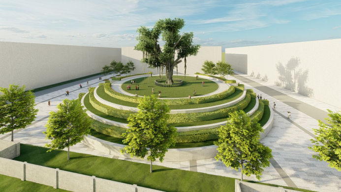 古树公园占地面积约3000平方米,计划工期4个月。从已公布的公园效果图来看,公园将以古榕树为圆心,环四周布置条带状草坪、花坛,借助起伏的地形营造多层次景观效果。