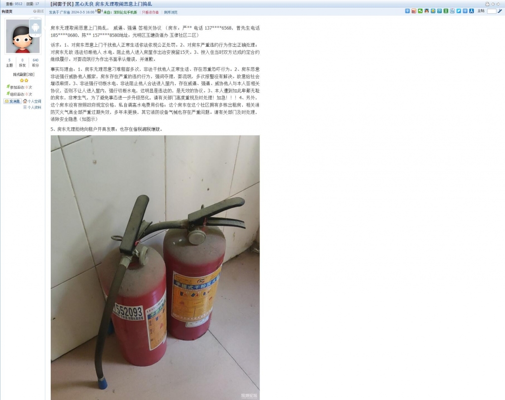 5、帖文《黑心无良 房东无理取闹恶意上门捣乱》