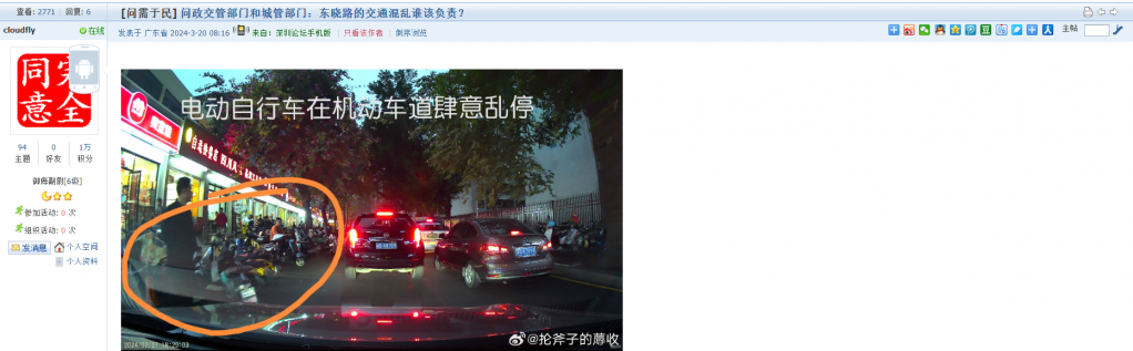 3、帖文《问政交管部门和城管部门:东晓路的交通混乱谁该负责?》