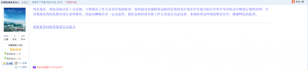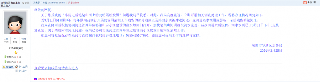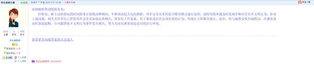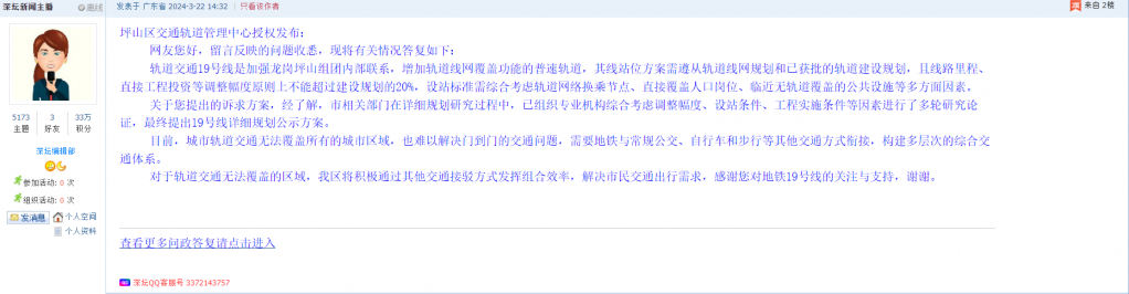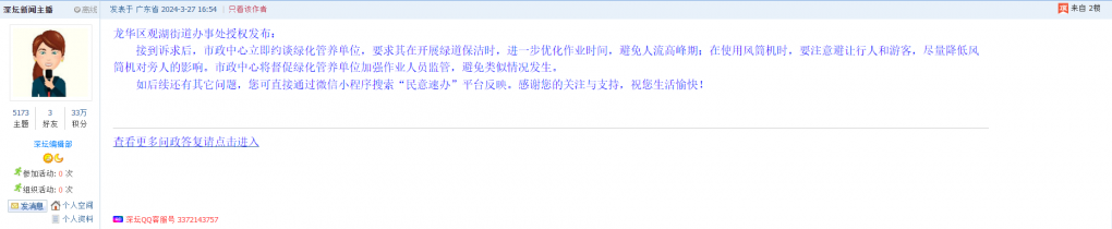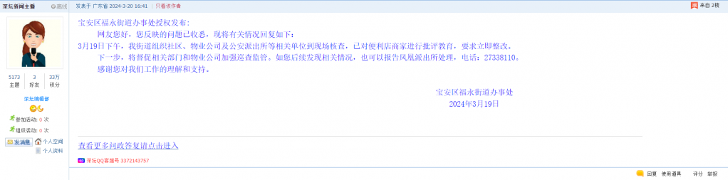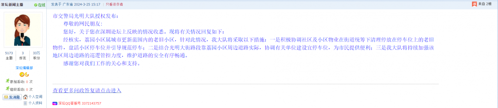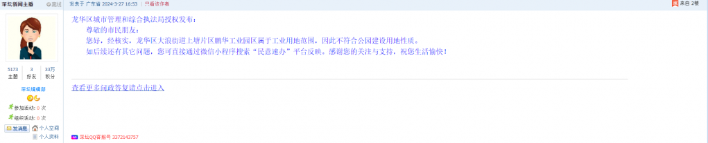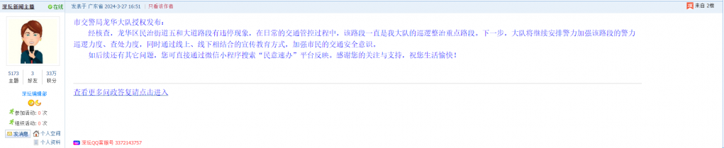 各职能单位如需对网友反映的问题进行回应,可在深圳论坛注册官方账号并通过认证,回帖进行回应。