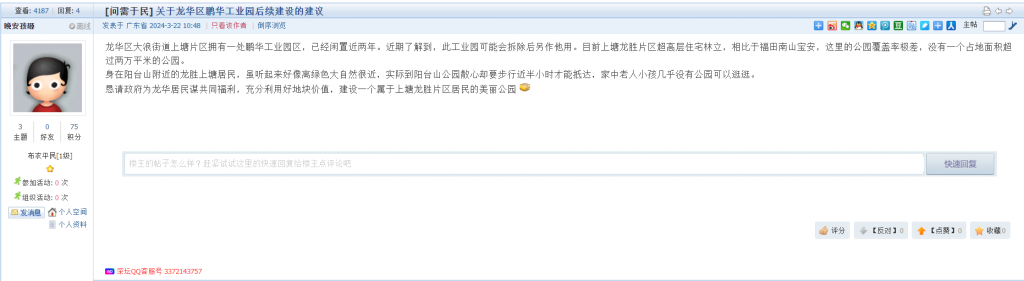 14、帖文《关于龙华区鹏华工业园后续建设的建议》