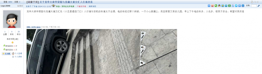 3. 帖文《吉华上水径信和路-规划非机动车道太窄无法通行》