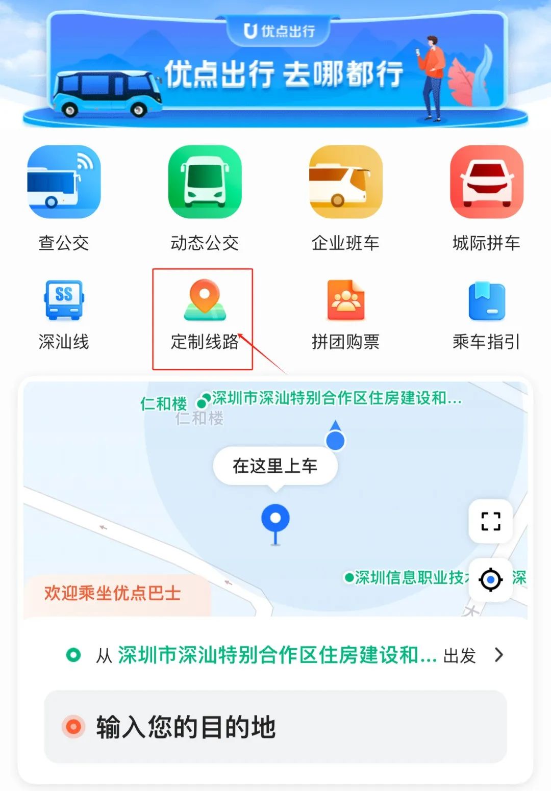 拼团定制公交服务的运营区域覆盖深汕特别合作区内,以及深汕至海丰县(含梅陇、海城等镇)和深汕至惠东县(含吉隆、黄埠等镇)等多条线路。乘客只需下载“优点出行”APP或搜索“优点出行”微信小程序,便可开启“拼公交”的全新体验。