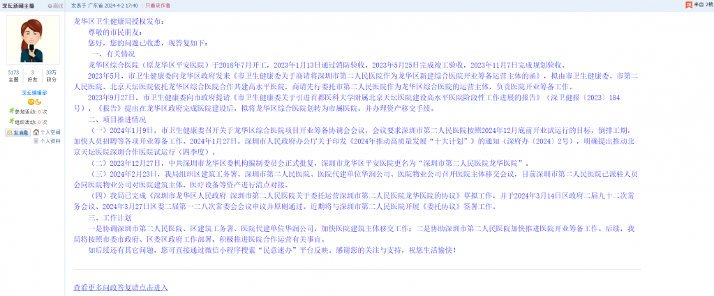 各职能单位如需对网友反映的问题进行回应,可在深圳论坛注册官方账号并通过认证,回帖进行回应。